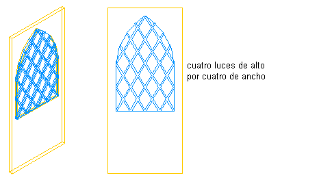 Vidrio de puerta gótico con montantes secundarios romboidales