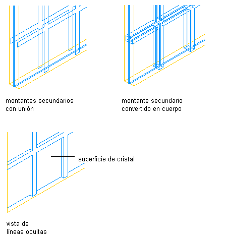 | convertir todos los montantes secundarios en un cuerpo con las juntas unidas | en Montante secundario, seleccione Convertir en cuerpo. |