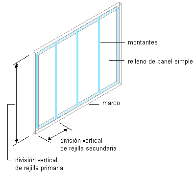 Cada tipo de elemento puede tener varias definiciones. Por ejemplo, se puede definir una división para crear una rejilla horizontal o vertical y especificar que las celdas contengan una rejilla anidada o un conjunto de puerta y ventana. Para facilitar su reutilización, puede guardar las definiciones de elementos y, después, asignarlas a rejillas, celdas, marcos o montantes.