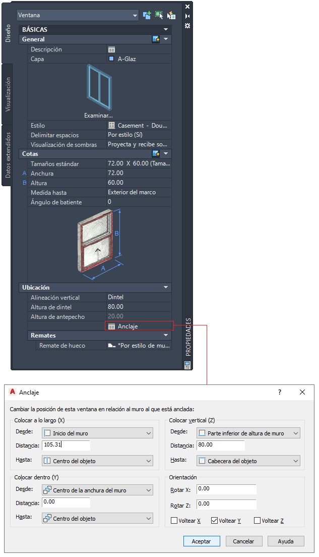 Las propiedades de los objetos se introducen y se modifican en la paleta Propiedades. La mayoría de las propiedades se indican directamente y se actualizan de inmediato en la pantalla. Algunos objetos cuentan con propiedades complejas que se indican en hojas de trabajo a las que se accede desde la paleta Propiedades.