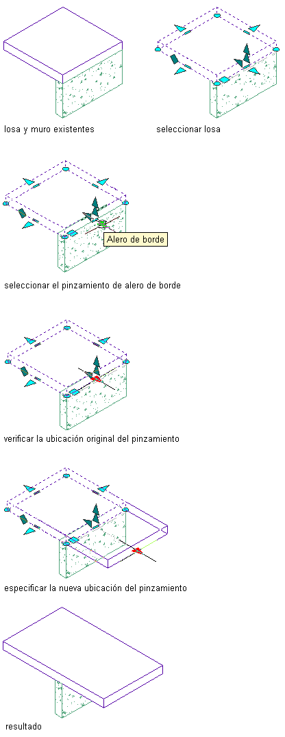 Modificación del alero de borde de una losa mediante el pinzamiento de alero de borde