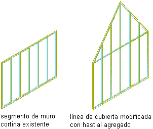 Modificación de la línea de cubierta de un muro cortina añadiendo un hastial