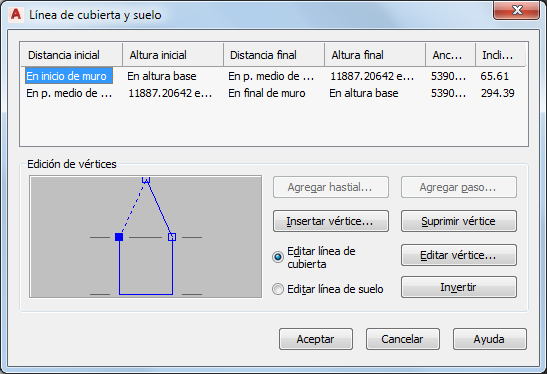 La tabla de la parte superior del cuadro de diálogo muestra información sobre todos los vértices del muro cortina. También puede seleccionar el vértice que desea editar en la lista.