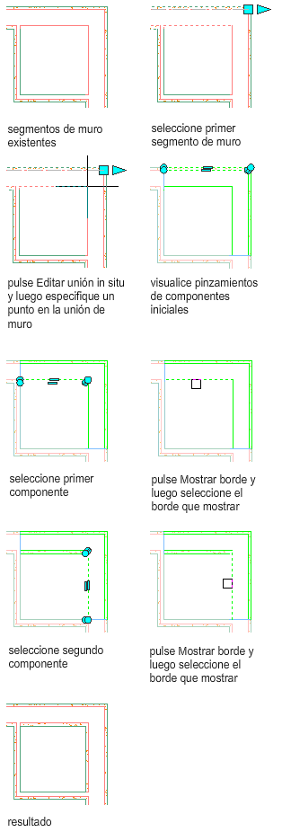 Siga este procedimiento para modificar una intersección de muro visualizando un borde de componente de muro que estaba oculto.
