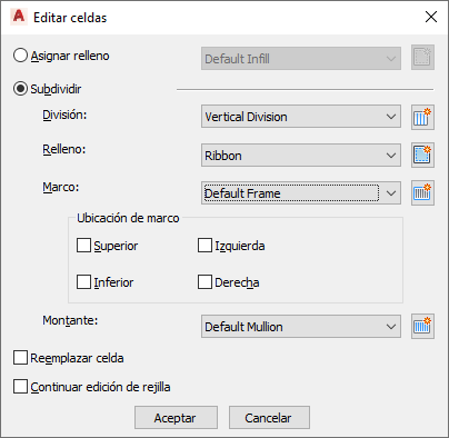 seleccionar una definición de marco para la rejilla creada después de la subdivisión de la celda seleccione la definición del marco y pulse Aceptar.