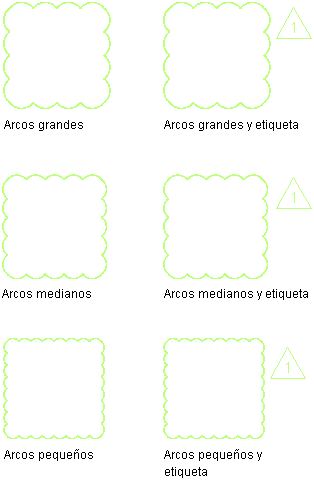 | General/Longitud de arco | Especifica la longitud de arco de cada segmento de nube. Nota: Este valor se expresa en unidades de espacio papel.
