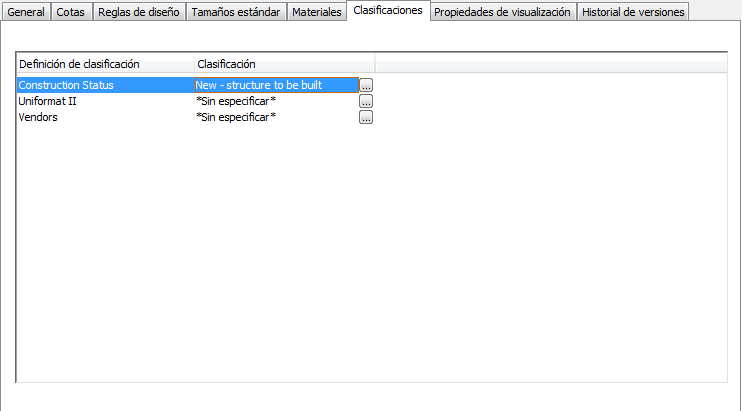 Creación de una definición de clasificación para un estado de construcción