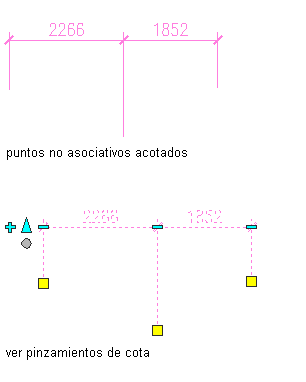 | Acotar puntos de referencia a objetos (crea una cota asociativa) | verifique que la referencia a objetos está activada. Escriba p (designar Puntos) en la línea de comando y seleccione puntos de objetos con el cursor. |
