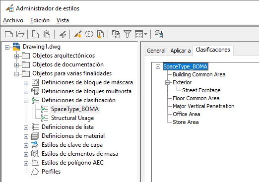 Clasificación BOMA insertada en un dibujo