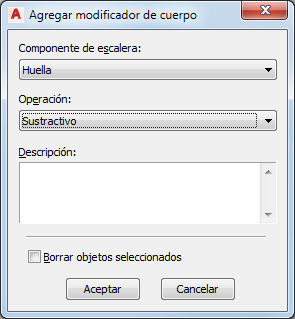 Sustracción de un modificador de cuerpo de un componente de escalera