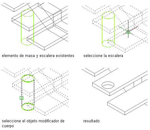 Utilice este procedimiento para crear modificadores de cuerpo y sustraerlos de componentes de escalera.
