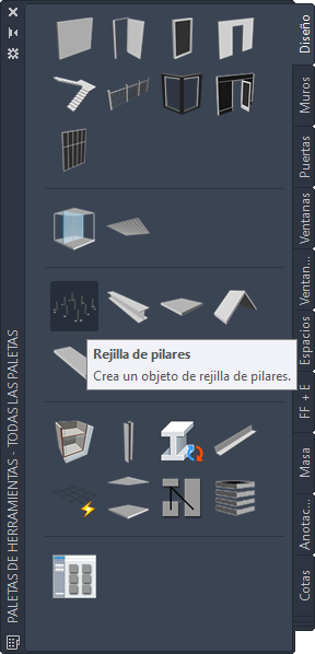 Si las imágenes de las herramientas se definen con un tamaño menor, en la paleta podrán mostrarse más herramientas. Es un factor importante si se muestran a la vez varias paletas, por ejemplo las de Propiedades y Navegador de proyectos.
