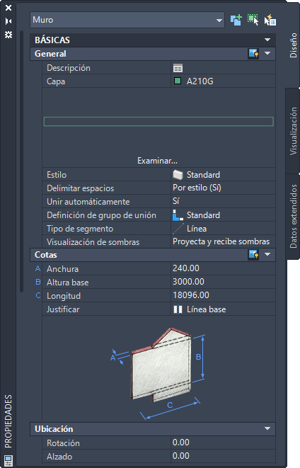 Paleta Propiedades para un objeto de muro normalizado