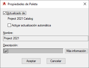 Si se decide activar la actualización automática, cada vez que se inicie el software, las paletas de herramientas vinculadas se actualizarán para reflejar los cambios realizados en ellas y su contenido en el catálogo de herramientas.