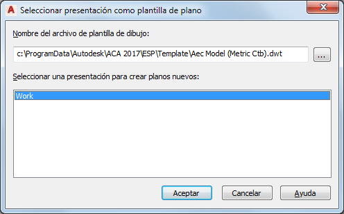 - Seleccione la presentación que desea utilizar como predeterminada para crear nuevos planos. A continuación, pulse Aceptar.