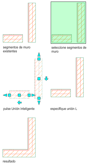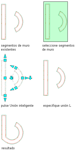 1. Seleccione los segmentos de muro que desee incluir en la unión de muros.