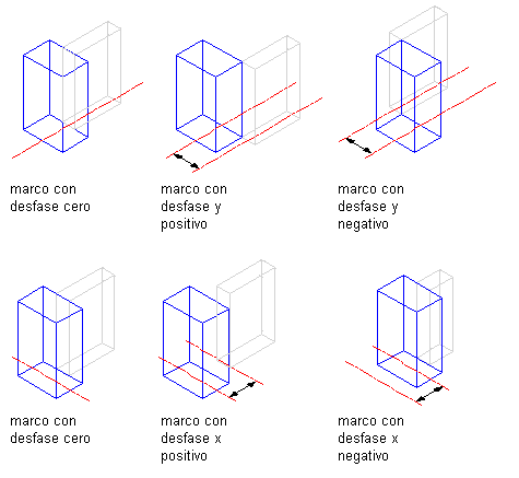 | Y | En vista en planta, un desfase positivo de Y desplaza el borde del marco por encima de la línea base, mientras que un desfase negativo de Y lo desplaza por debajo de ella. |