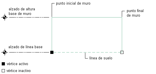 Se pueden modificar las líneas de cubierta y de suelo de los muros para crear muros no rectangulares.