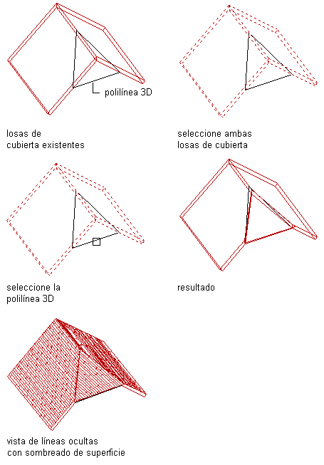 Utilice este procedimiento para modificar dos losas para cubierta a fin de agregar una tercera losa y crear así una cubierta de hastial delimitada.