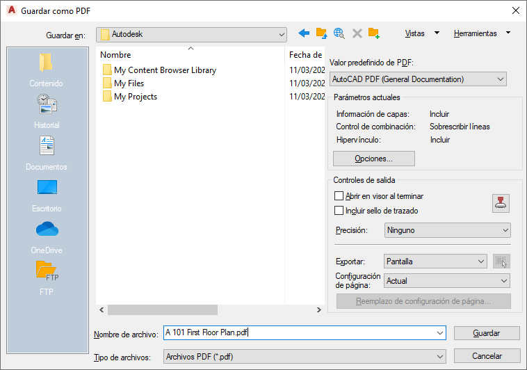 En el cuadro de diálogo Guardar como, especifique la información que desee para el archivo PDF.