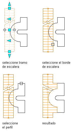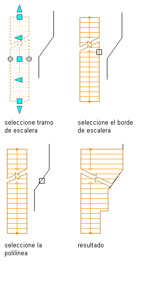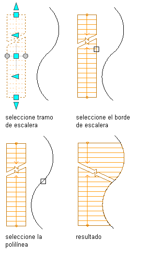 Proyección de bordes de escaleras en segmentos de polilíneas curvas