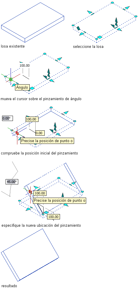 Uso del pinzamiento de ángulo para editar la inclinación de la losa