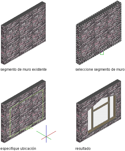 - Seleccione un muro o pulse Intro y, a continuación, indique el punto de inserción del conjunto de puerta y ventana.