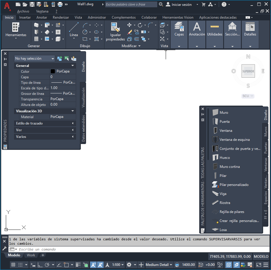 Configuración por defecto del espacio de trabajo de Conjunto de herramientas de AutoCAD Architecture 2027