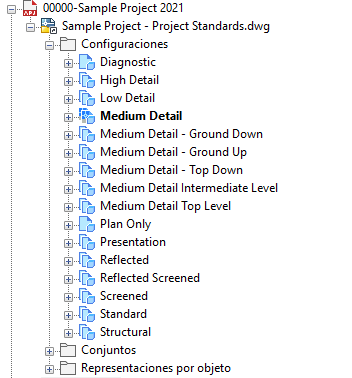 Las configuraciones de visualización normalizadas se organizan en un dibujo de normas que se asigna al proyecto. Cuando se ha definido un grupo de configuraciones de visualización como configuraciones normalizadas del proyecto, y se han introducido en los dibujos del proyecto, tienen un vínculo a las normas y se pueden sincronizar con ellas. Con el mismo vínculo, las configuraciones de visualización de un dibujo del proyecto también pueden actualizar las configuraciones de visualización normalizadas.