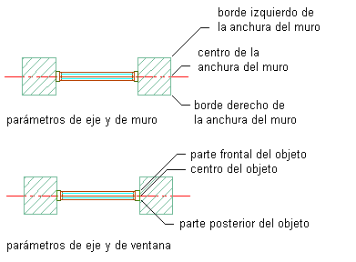 | usar el borde izquierdo del muro como punto de referencia | seleccione Borde izquierdo de la anchura del muro en Desde. |