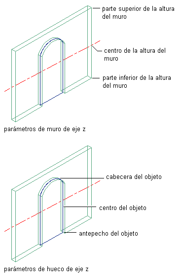 | medir hasta la parte inferior de los huecos en muros | seleccione Antepecho del objeto en Hasta. |