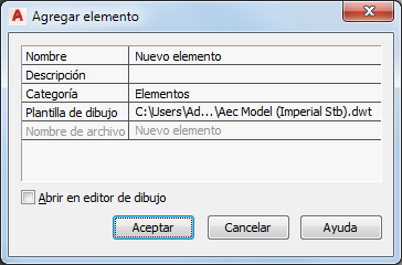 | asignar un nombre al nuevo elemento | escriba un nombre. Si utiliza el número de proyecto como prefijo de los nombres de los archivos del proyecto, no es necesario que escriba el prefijo. El nombre completo con prefijo se muestra en Nombre de archivo. |