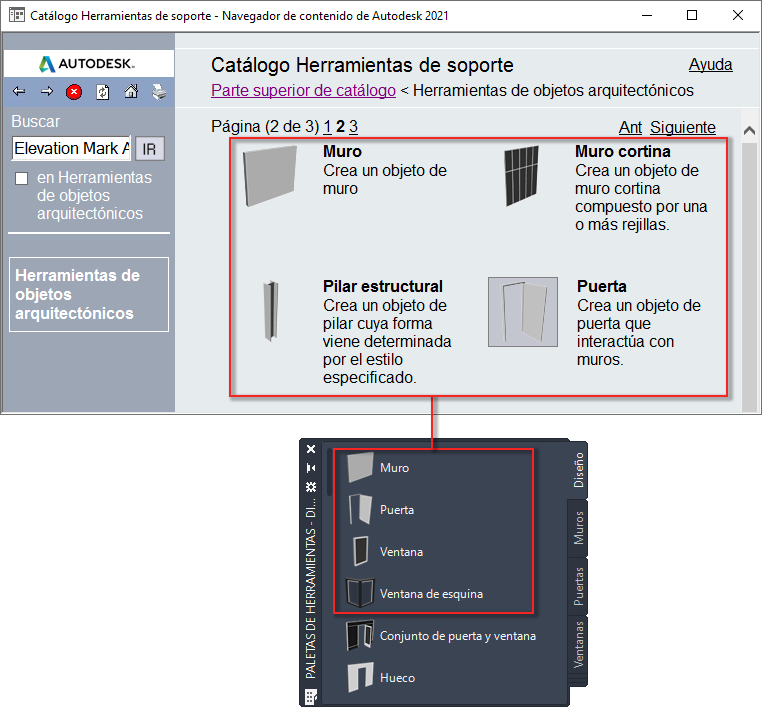 Utilice este procedimiento para vincular una herramienta de un catálogo del Navegador de contenido a una paleta de herramientas en Conjunto de herramientas AutoCAD Architecture 2027.