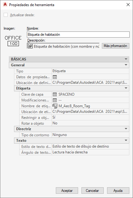 De forma alternativa, seleccione la herramienta en la paleta, pulse con el botón derecho y elija Propiedades. A continuación, seleccione Actualizar desde en la hoja de trabajo Propiedades.