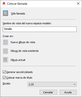 Utilice este procedimiento para colocar una llamada que cree un detalle en el dibujo de vista actual.