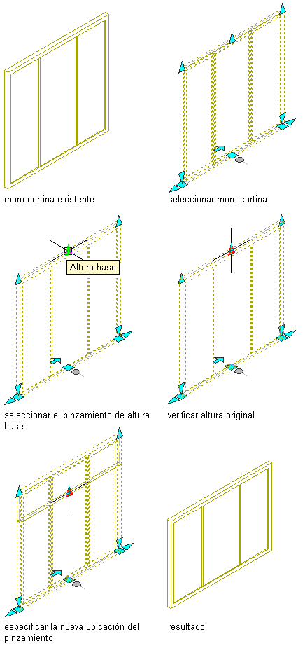 Utilice este procedimiento para cambiar la altura base de un muro cortina con pinzamientos.