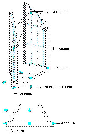 Pinzamientos de cotas de una ventana en una vista en planta y una vista de modelo