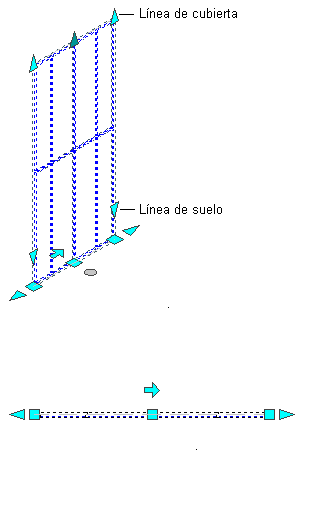 Los objetos también presentan diversos pinzamientos, en función de la vista activa. Por ejemplo, una viga estructural tiene un pinzamiento de rotación adicional en las vistas de modelo que no se muestra en las vistas en planta. Como la rotación tridimensional de una viga sólo se puede hacer en vistas isométricas, mostrar el pinzamiento de rotación en las vistas en planta no tiene sentido. De igual manera, los pinzamientos de líneas de cubierta y de suelo únicamente son útiles en vistas 3D; por tanto, sólo se muestran en las vistas de modelo.