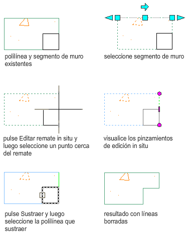 Siga este procedimiento para modificar un remate de muro sustrayendo un perfil de un componente. Un perfil puede ser cualquier área delimitada por una polilínea que solape un componente específico.