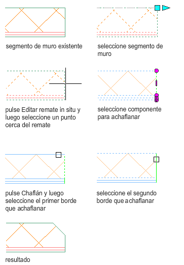 Siga este procedimiento para modificar un remate de muro achaflanando una esquina de componente de muro.
