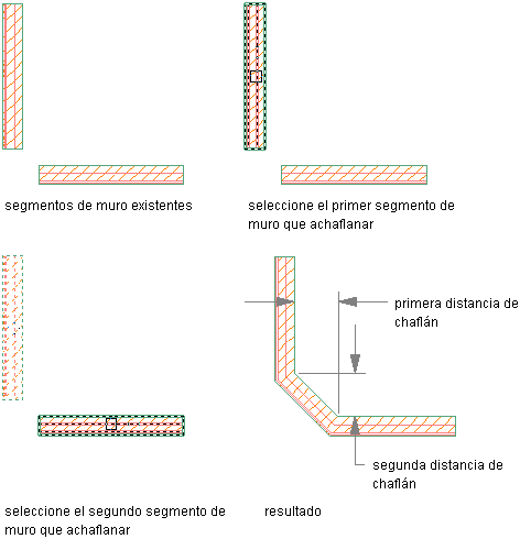 especificar la opción de distancia como la predeterminada para achaflanar muros escriba ME (MÉtodo) y, a continuación S (DiStancia).