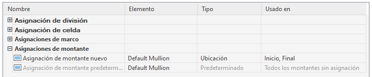 En el panel izquierdo, seleccione la rejilla donde desea crear una nueva asignación de montante.