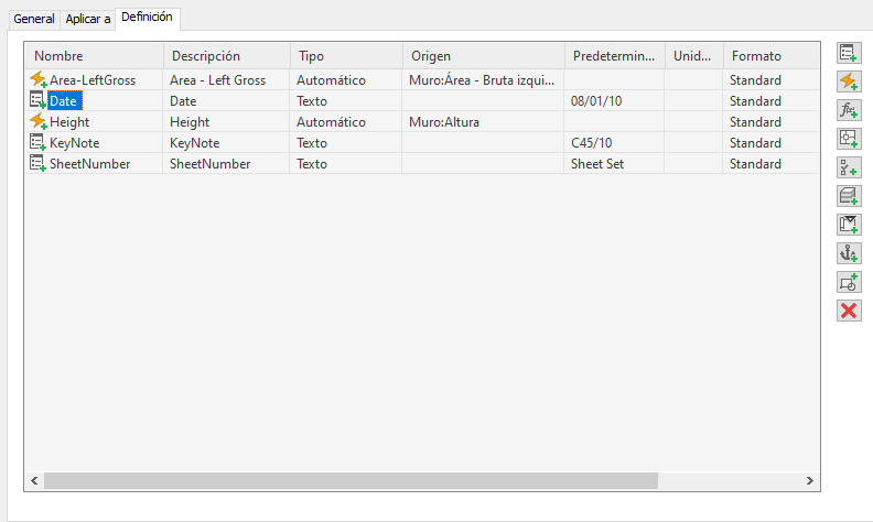 Nota: Los campos siempre se encuentran en propiedades manuales.