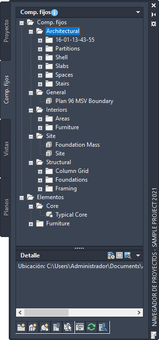 Categorías de componentes fijos en el Navegador de proyectos