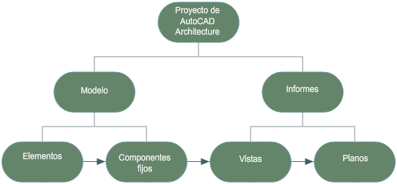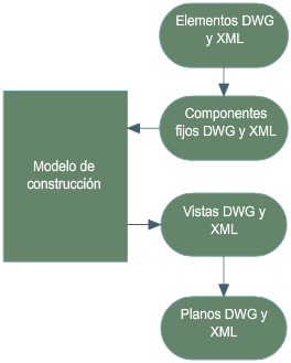 Un proyecto de Conjunto de herramientas AutoCAD Architecture 2027 tiene una estructura XML subyacente. Para cada archivo de dibujo que cree, por ejemplo un dibujo de suelo o de la estructura, también se crea un archivo XML. Este archivo XML contiene la información relativa al proyecto, como información de nivel y de división. Cualquier archivo de dibujo creado en un proyecto se puede reutilizar fuera del mismo, ya que en sí no contiene ninguna información relacionada con el proyecto.