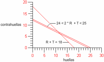 Sujetos a las restricciones de las reglas de calculadora y debido al hecho de que las alturas de huella deben ser un divisor uniforme de la altura de suelo a suelo, el programa se aproxima tanto como le es posible a la altura de contrahuella y a la longitud de huella óptimas seleccionadas.