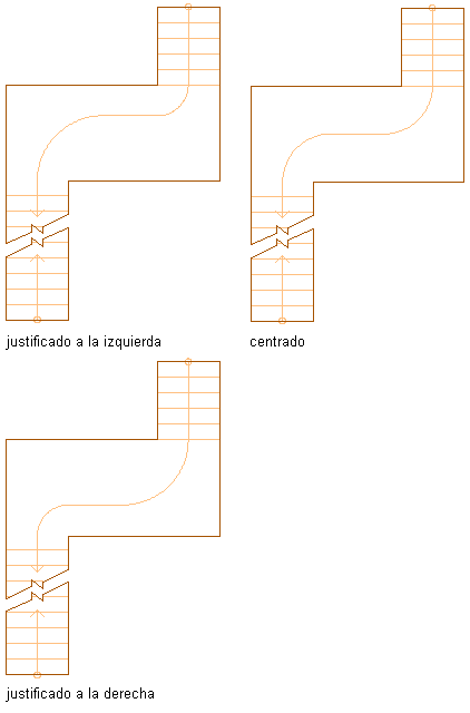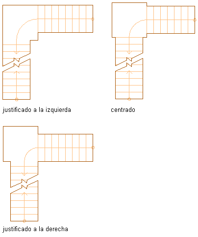El tipo de descansillo y la justificación de la escalera determinan dónde se agrega la anchura adicional en el descansillo.