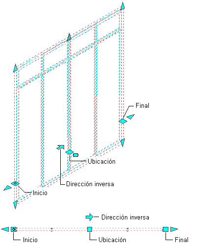 Visualización de los pinzamientos de unidad de muro cortina Inicio, Final, Ubicación e Invertir dirección