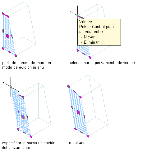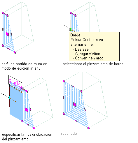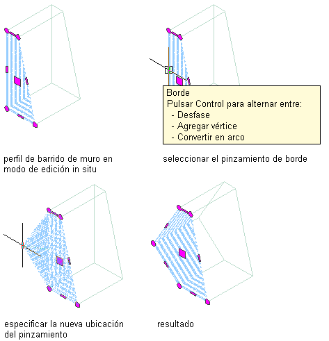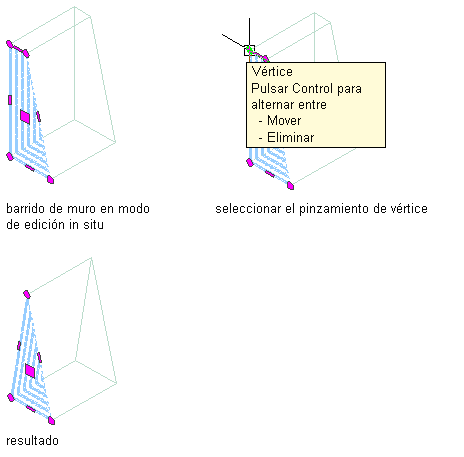 Desplazamiento de un vértice de un barrido de muro de edición in situ