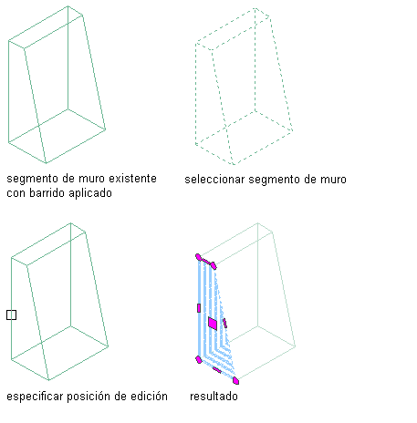 Utilice este procedimiento para cambiar la forma de componentes de muro definidos con un barrido. Puede seleccionar un perfil distinto para cambiar el aspecto del barrido, o editar el perfil actual.